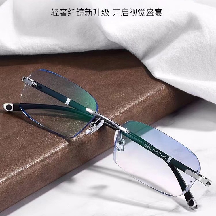 【ミラーボックス】変色ファッションダイヤモンドの縁切りにフレームなし老眼鏡ブルーレイ防止中高年者抗疲労老花