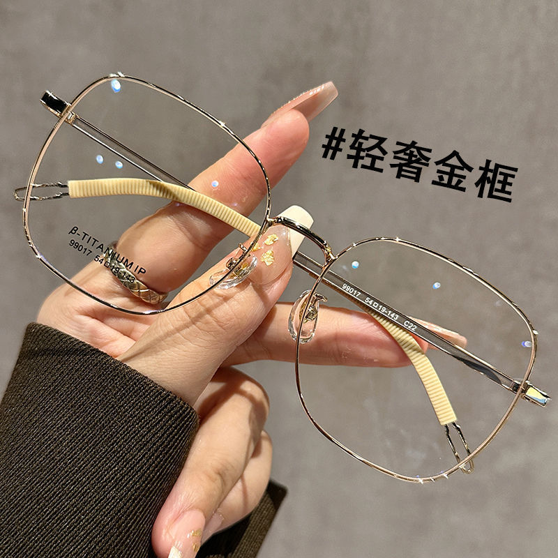 レトロ金糸辺平光眼鏡フレームブルーレイ防止フレーム女性素顔顔痩せ男は度数近視ができる