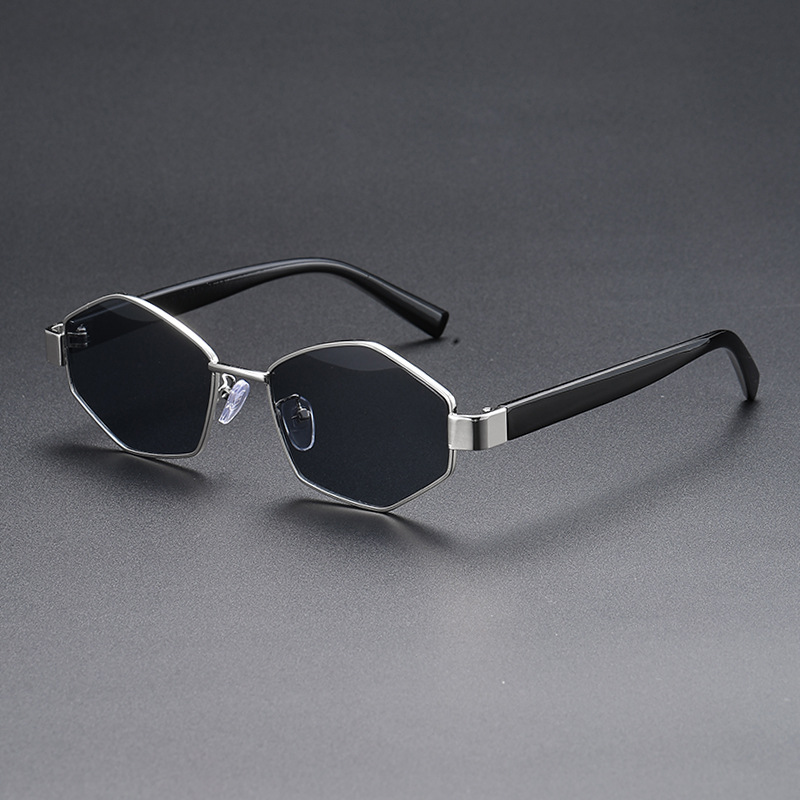 新型の越境ファッションのメガネは多角形の金属のネットの赤い同型のサングラスの女性の2025欧米のサングラスに似合います。
