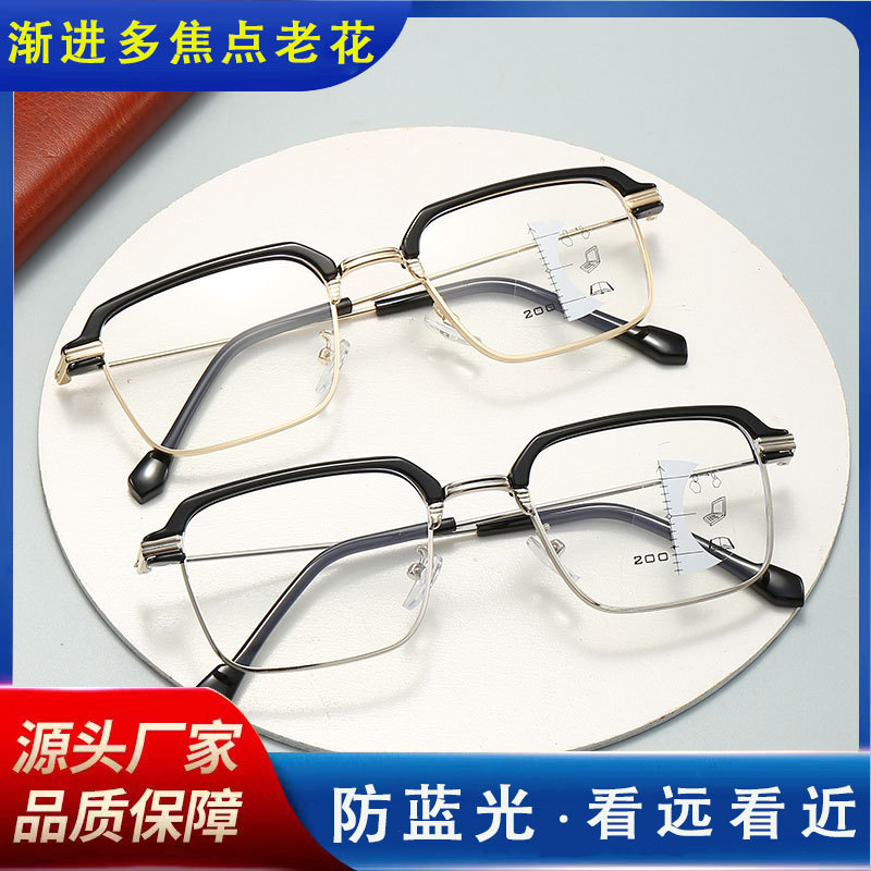 金属の四角の枠の漸進的な多焦点の老眼鏡の高清の青い光の震えの音の爆発の遠近の両用は遠くを見ます。