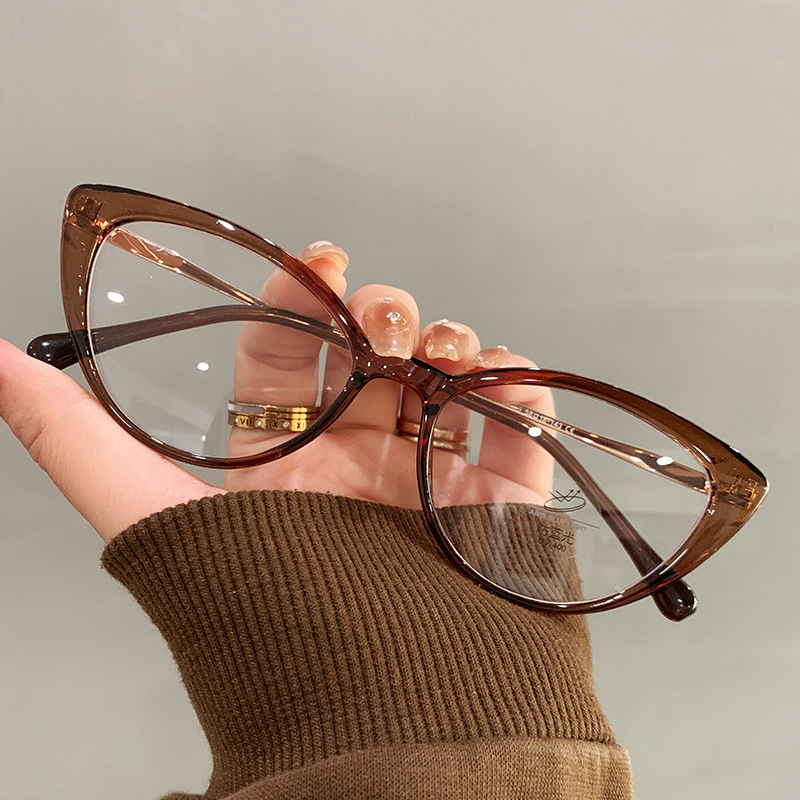 Tr90冷茶色いメガネ近視の女性は度数レンズのブルーレイを防ぐことができます。