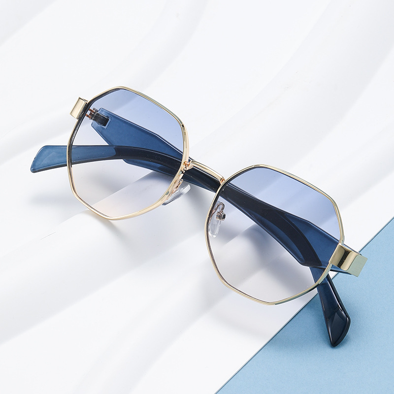 新型の越境ファッションのメガネは多角形の金属のネットの赤い同型のサングラスの女性の2025欧米のサングラスに似合います。