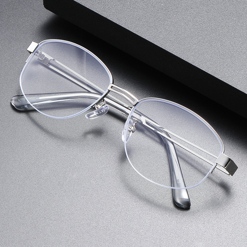 深セン高品質個性風fake半枠眼鏡近視男女高級感楕円素顔神器眼鏡