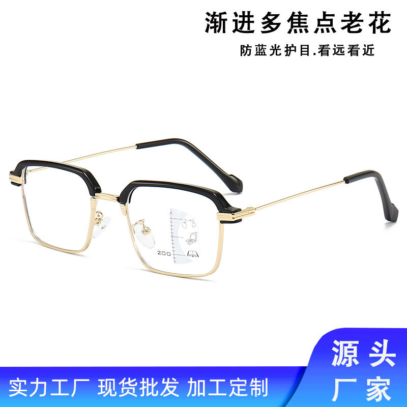 金属半枠ファッションシンプルな男性多焦点ブルーライト防止知能ズーム遠近両用ハイビジョン老眼鏡