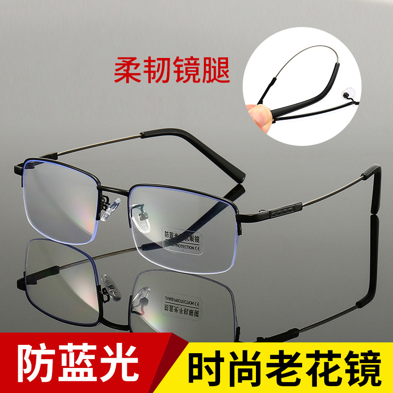 ハーフフレーム超軽量メモリーチタン合金老眼鏡フレームメンズビジネス抗青色光女性中高年光メーカー卸売