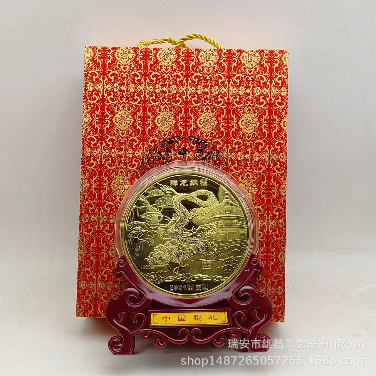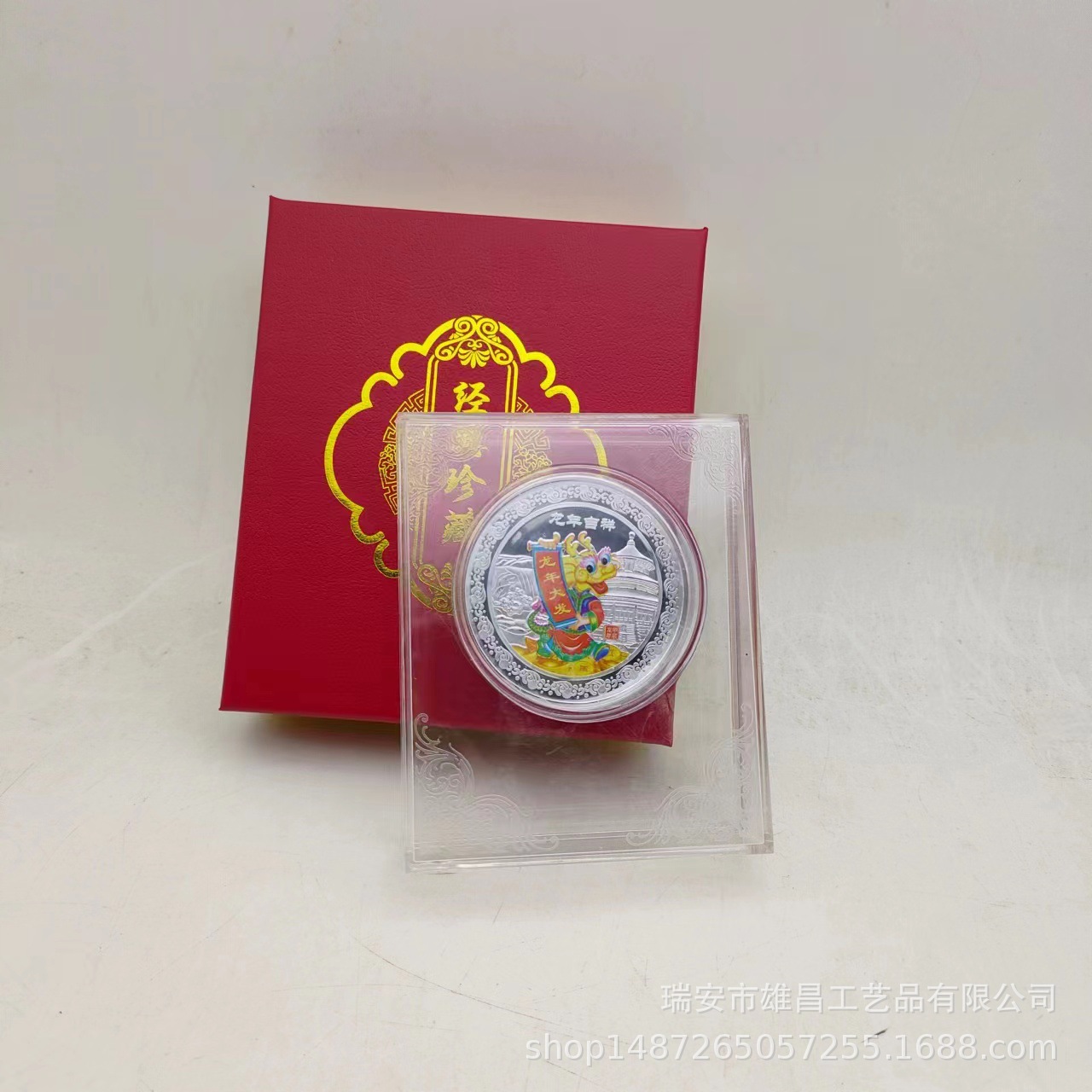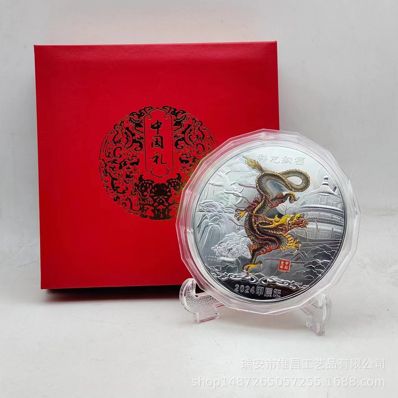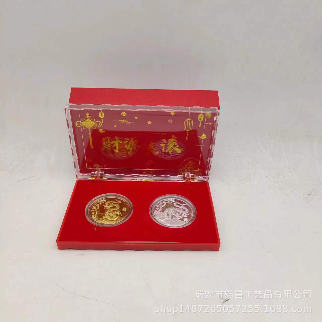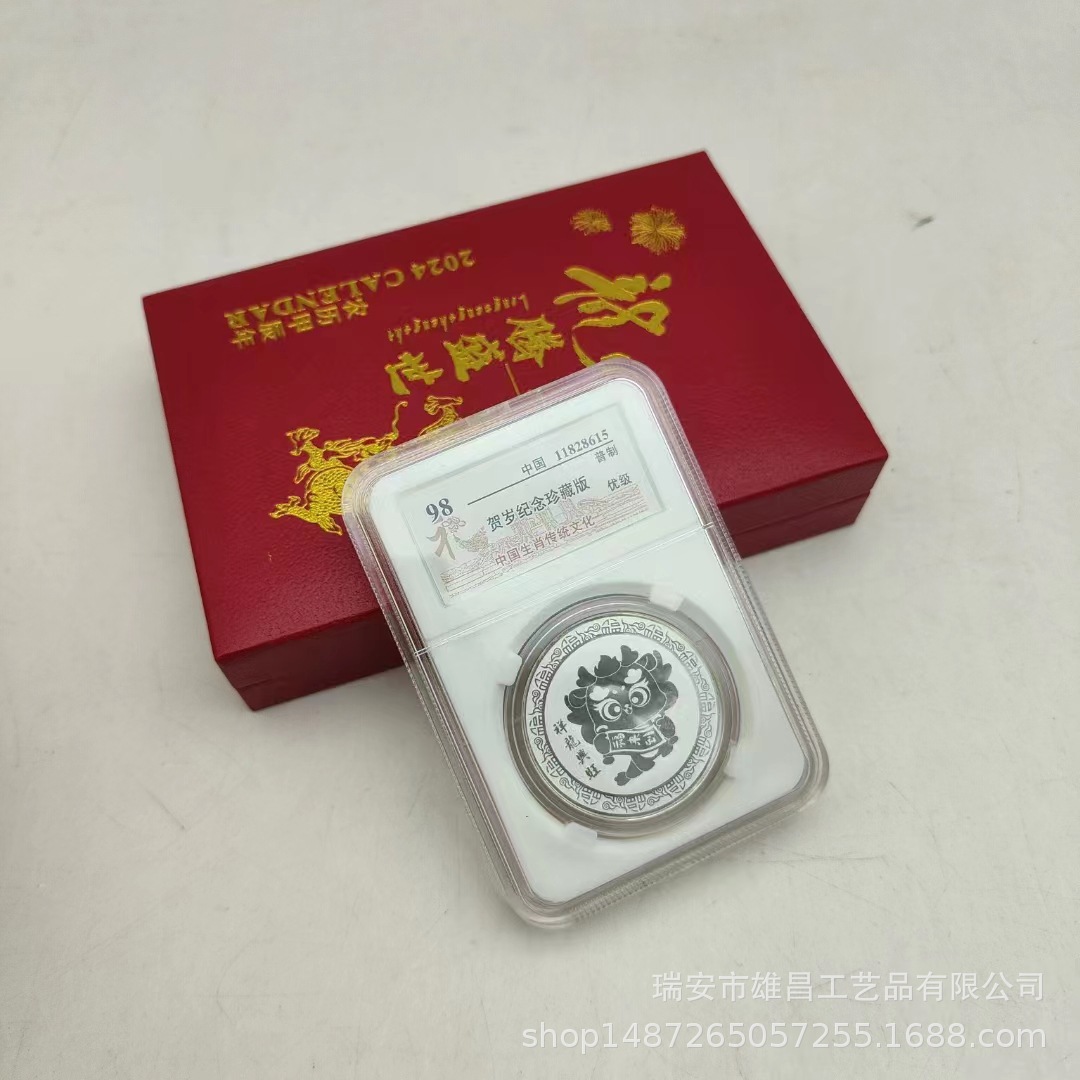 新商品2024年記念章生肖工芸品龍年記念貨幣水晶箱はビジネス保険のプレゼントを販売します。