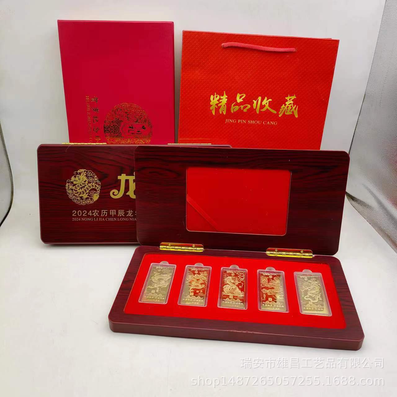 卸売り龍年大吉生肖龍年銀条木箱入り5枚記念金メッキ金色条会販売プレゼント