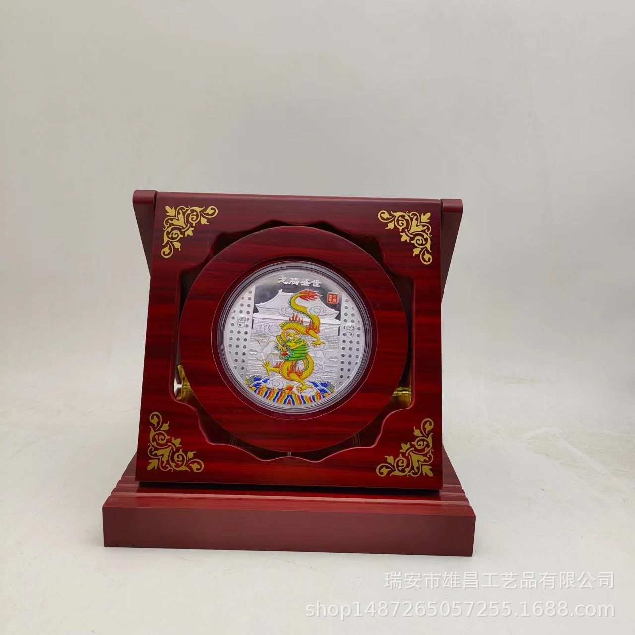2024年十二生肖龍年大吉龍年記念円章木箱家庭装飾品は360度回転できる