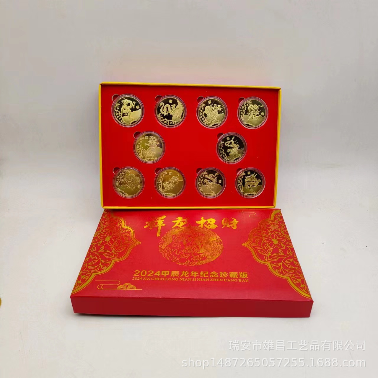 新商品2024年祥龍招財10枚龍年生肖記念章会販売ビジネス電気商生放送小プレゼント