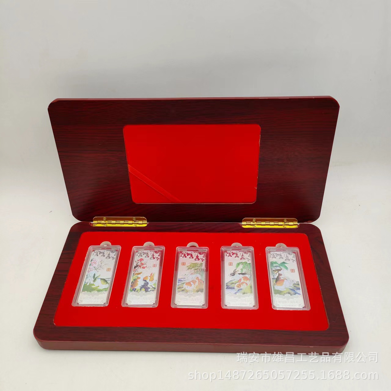 2023年兎年吉祥賀歳銀条五枚条のカラーメッキ木箱の金属置物はビジネス保険を販売します。