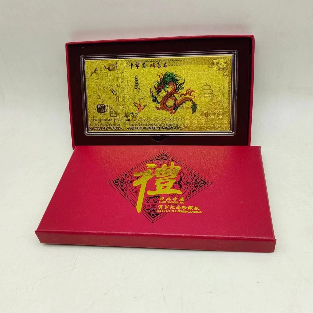 新商品2024年龍年金箔片金色生肖カード上下蓋セットはビジネス電気商のプレゼントに販売されます。