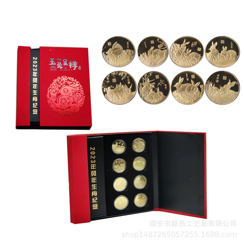 2023年玉兎呈祥兎年記念章8枚記念金貨金属工芸品会販売ビジネスプレゼント