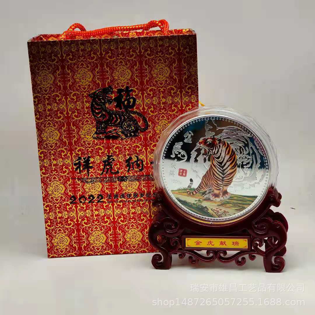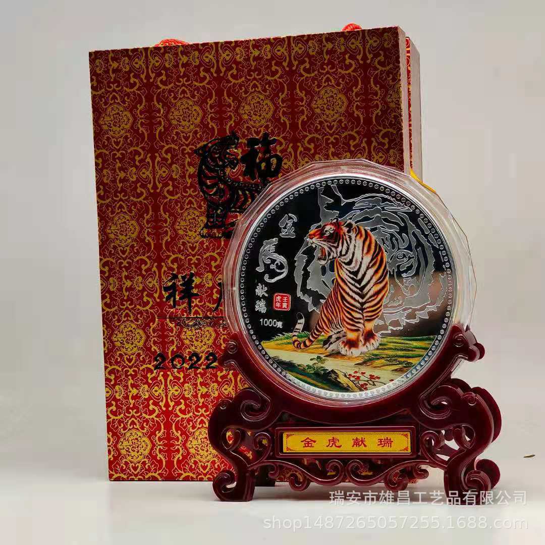 福虎鴻運虎年キロ章不足克銀盤合金レリーフ彩色デスクトップ家庭装飾品会販売礼