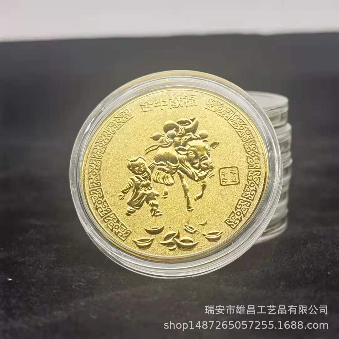 現代シンプル亜鉛合金牛年記念バッジ金メッキ金属玩具貨幣動物露店小プレゼント機械学業