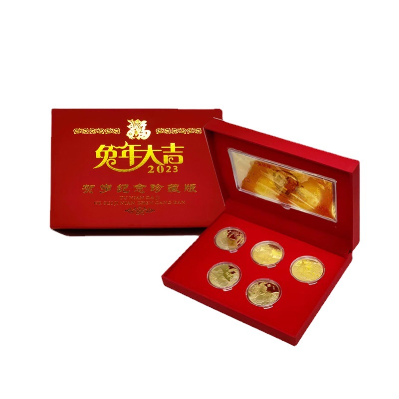 工芸品プレゼント新スタイル兎年記念五枚金章金箔保険会販売開業プレゼントプレゼント