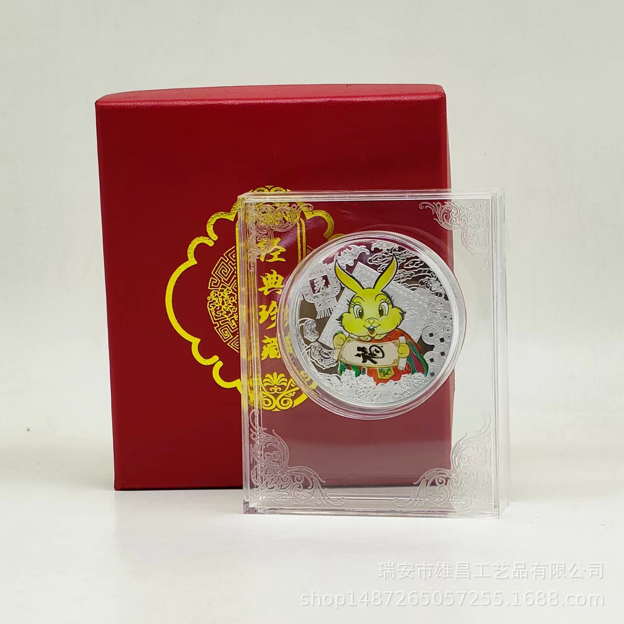 2023年ウサギ年記念バッジ直径60ミリの工芸家の置物はビジネス保険のプレゼントを販売します。