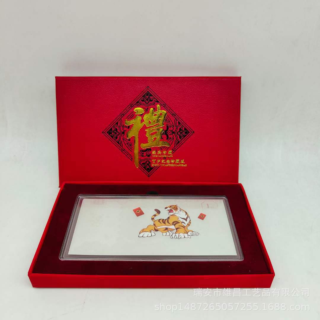 十二生肖虎年銀箔片銀1グラム彩色デスクトップ家庭装飾年会保険会議プレゼント