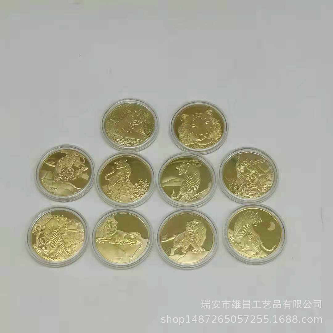 現代シンプル亜鉛合金虎年記念バッジ金メッキ直径35ミリ動物露店プレゼント機械学業