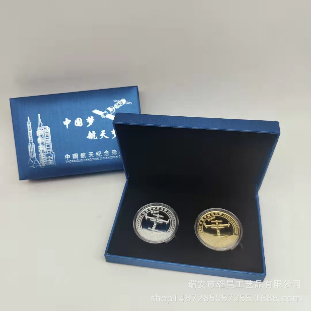 神舟宇宙の夢の中の国夢2枚の金メッキ銀と金銀の記念バッジの金属はビジネス保険の贈り物を販売します。