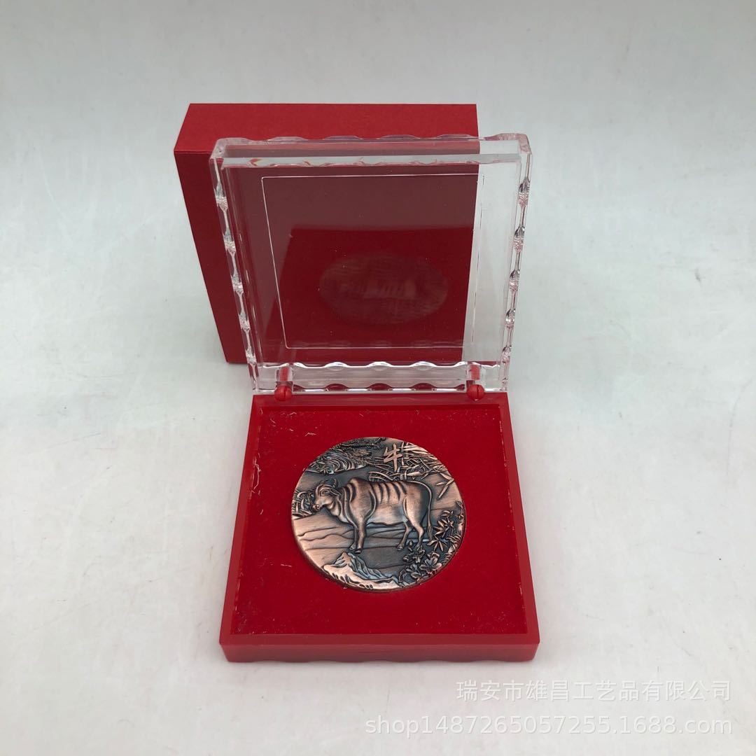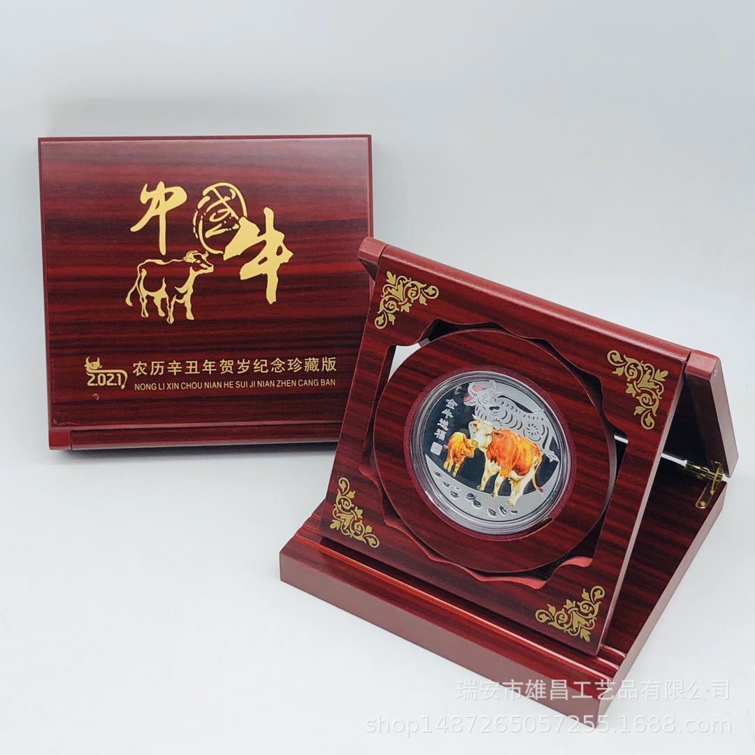 新商品中国牛記念バッジ牛年記念貨幣木箱入り販売ビジネスお祝いイベントプレゼント
