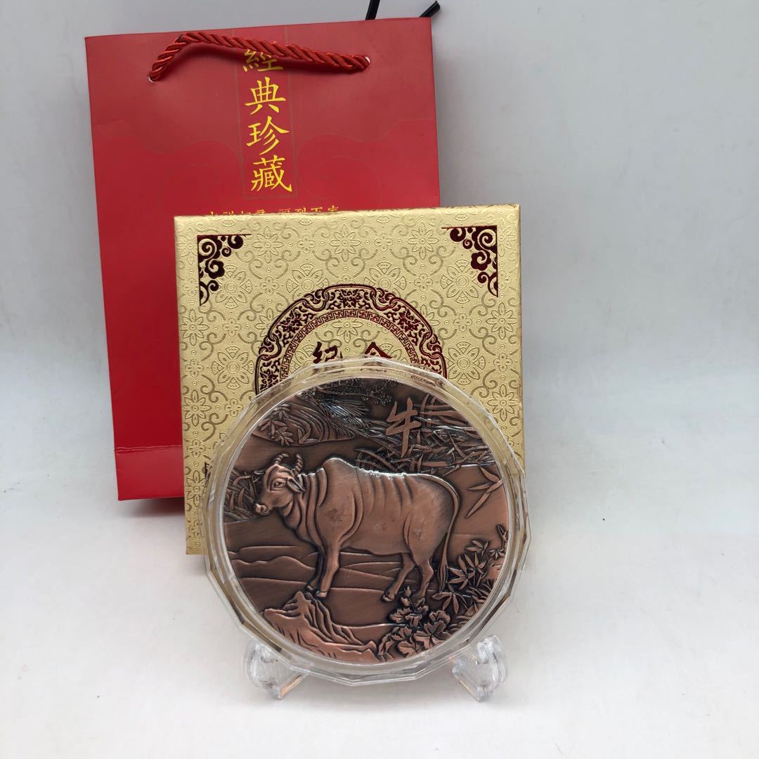 新商品2021年十二生肖牛年金属大銅章浮き彫り立体テーブル置物