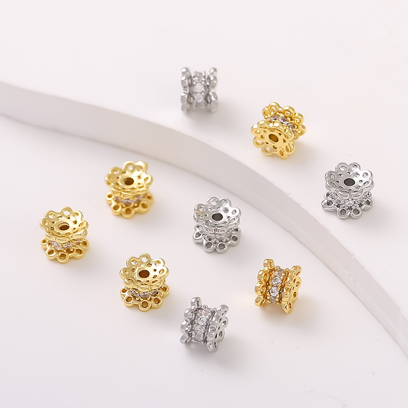 14k18k包みの金ジルコンの微嵌め込みの花の托の純銅の焼鋳はダイヤモンドの托のdiyの数珠のブレスレットの部品のc21を入れます。