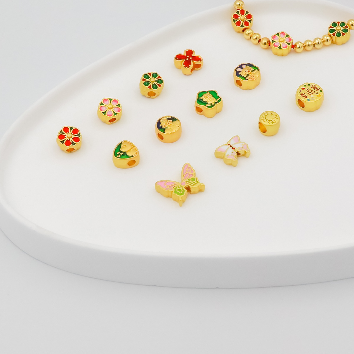サンドゴールドアクセサリー合金オイルドリップジュエリーアクセサリー麻雀花ラウンド祝福平和福袋弓ブレスレットビーズ D143