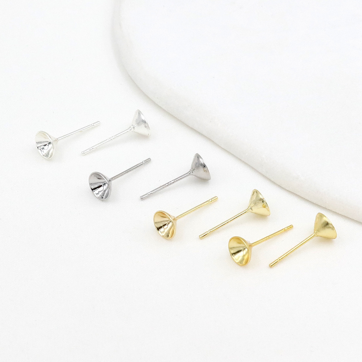 925防銀針メッキ18k真金尖杯耳釘針尖杯ドリルカップ空托尖底粘ドリルピン空托