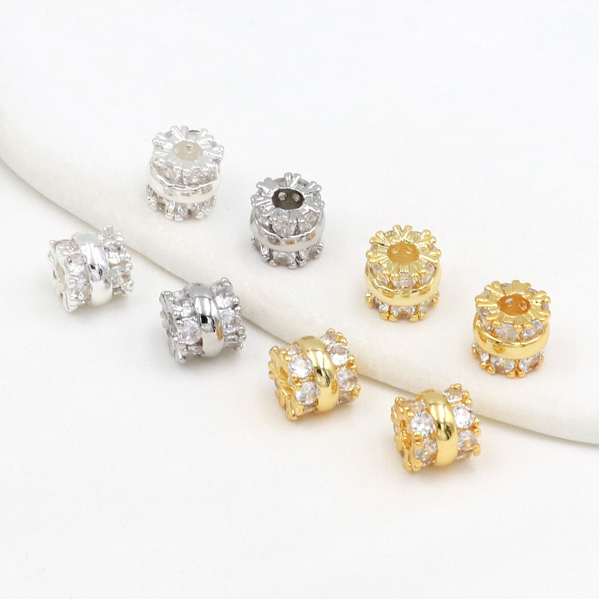 18k包みの金の保色のジルコンの大きい穴のドリルリングのビーズのメッキの真 � � の金のネックレスのマイクロはスペーサーのdiyの手作りの部品のC45を嵌め込みます。