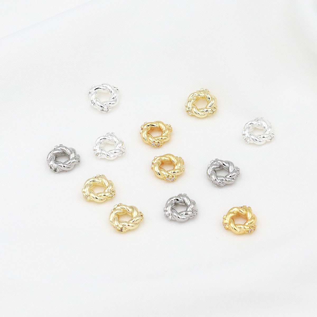 14k真金メッキ保色麻花ジルコン円形ビーズdiyブレスレットネックレス耳飾りペンダントアクセサリーC45