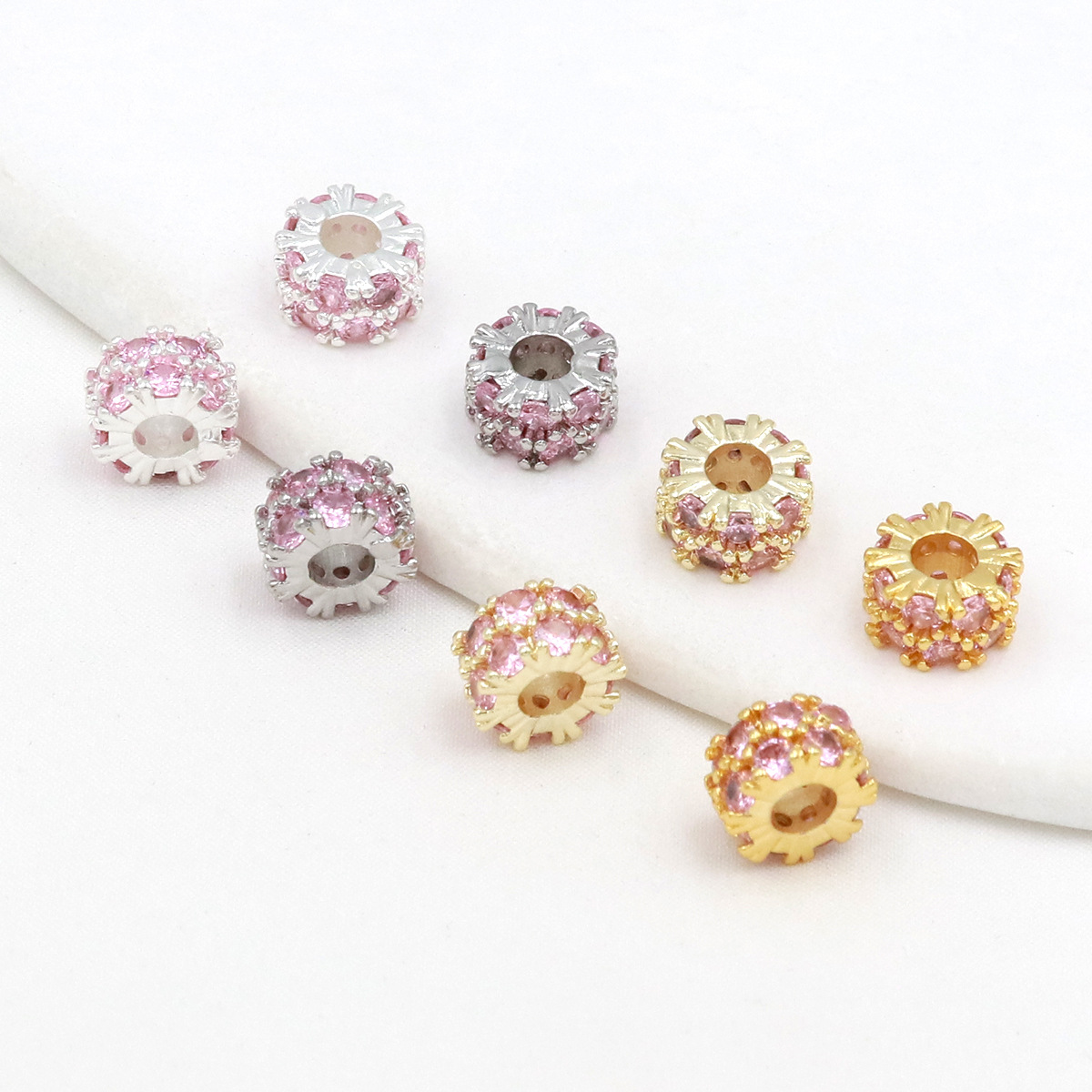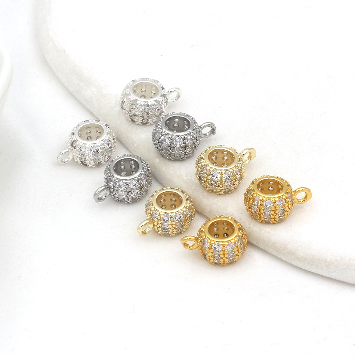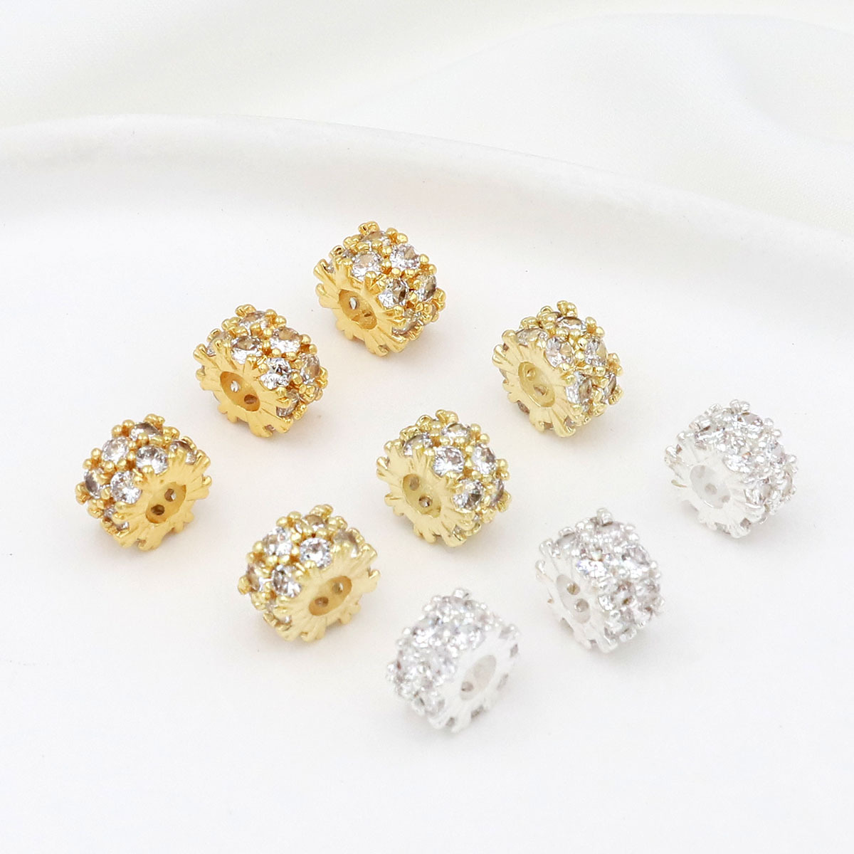 保色14k/銀メッキマイクロモザイク二重ジルコン大穴桶珠diyブレスレットネックレスアクセサリーC45