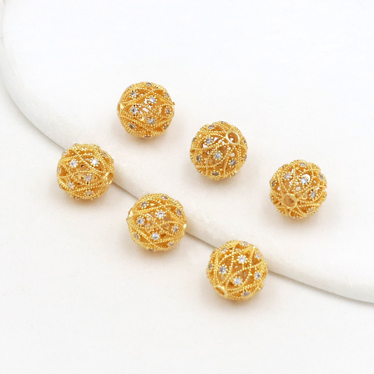 銅メッキ18k真金保色ジルコン蜂の巣コインビーズDIYアクセサリーブレスレットネックレスビーズ材料C45