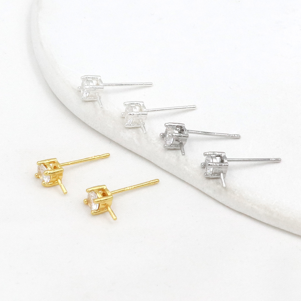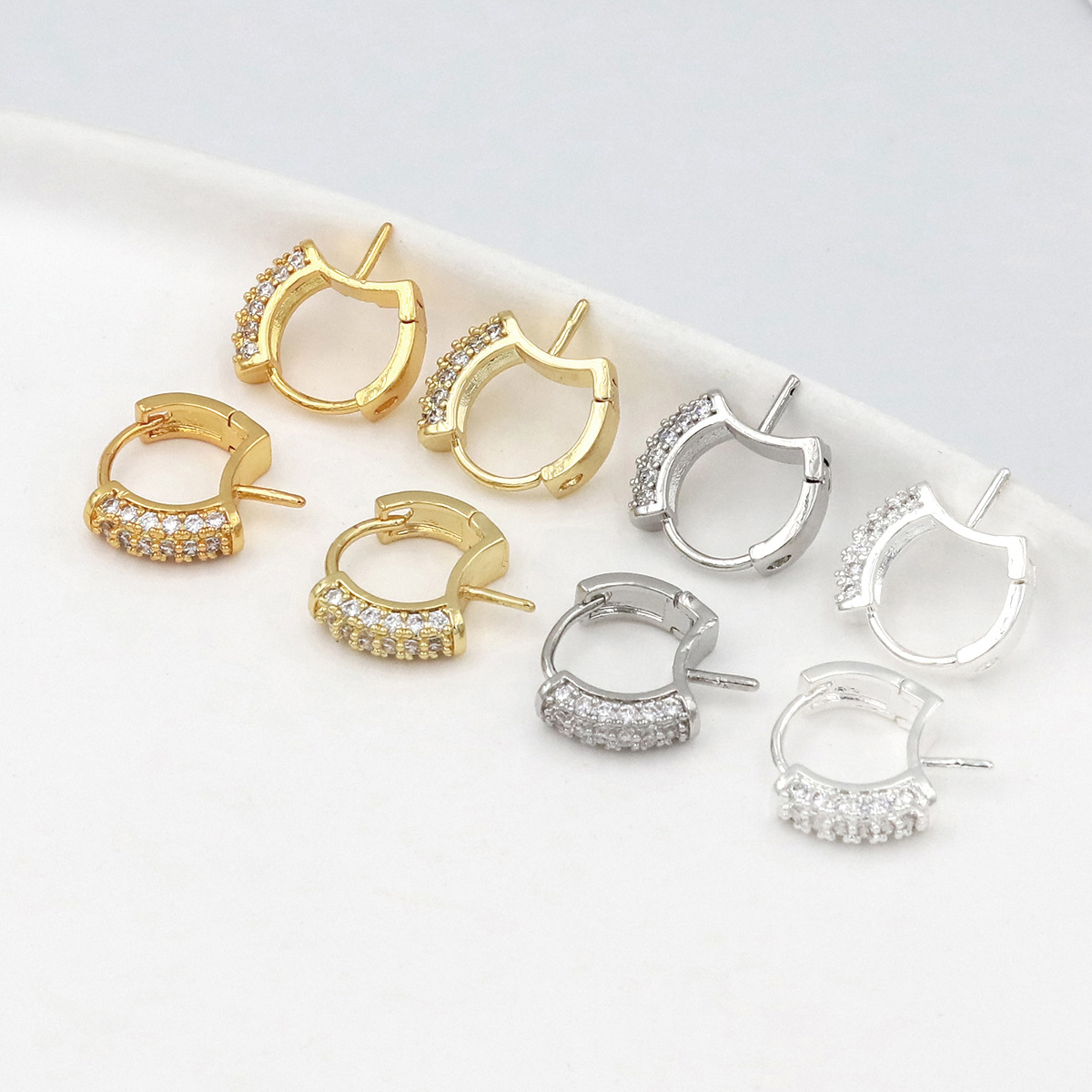 保色純銅メッキ18k真金耳ボタン円形ジルコン開口吊り輪耳輪diy耳飾りアクセサリーA43