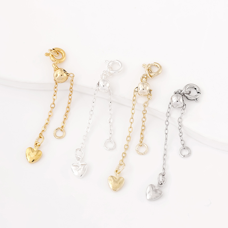 保色14k包金延長チェーン伸縮調節可能なメッキ真金桃心吊り飾り尾チェーンdiyアクセサリー延長チェーン