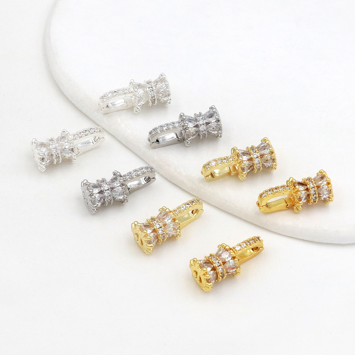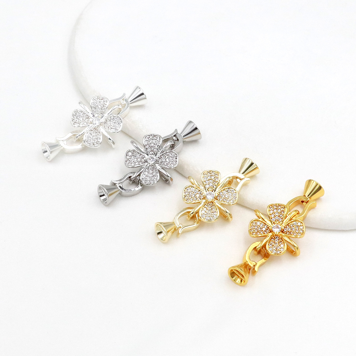 14K金メッキジルコニアリボンパールバックルDIYジュエリーアクセサリー花型バックルセーターチェーン接続エンドバックルB68