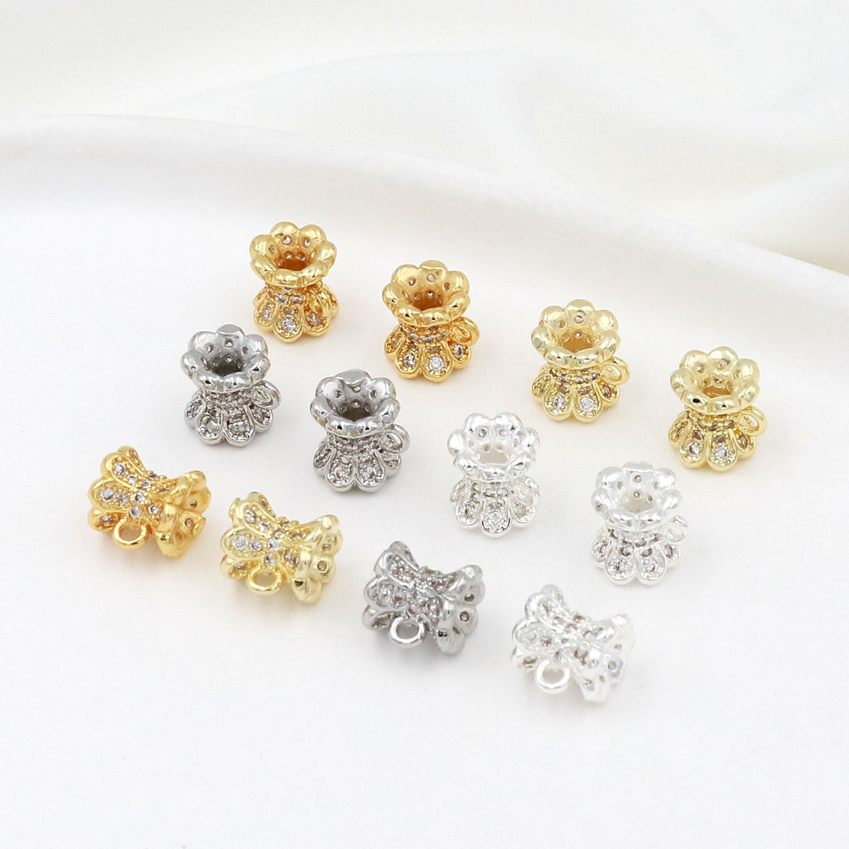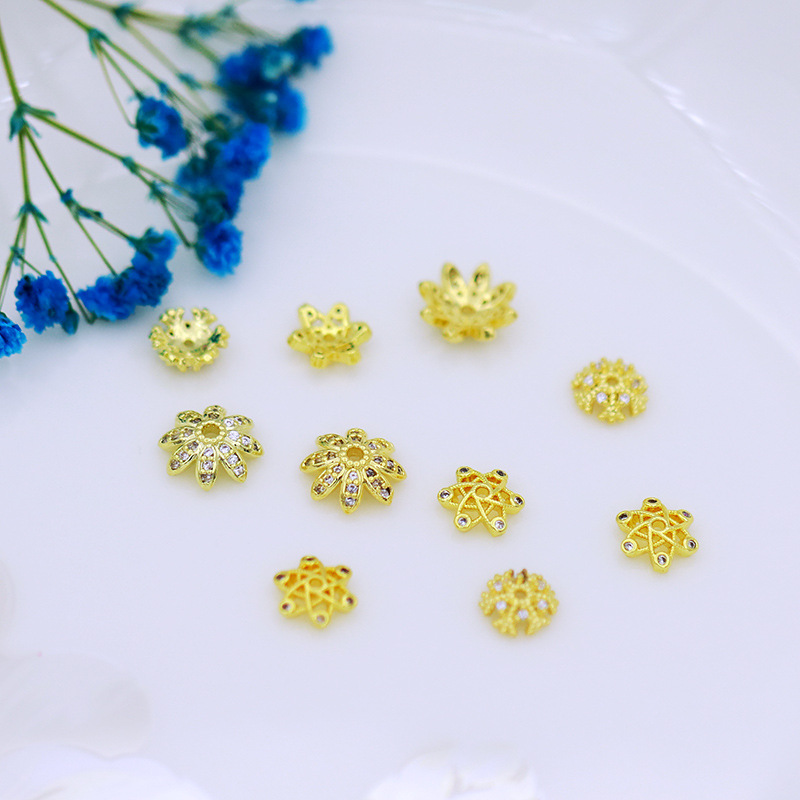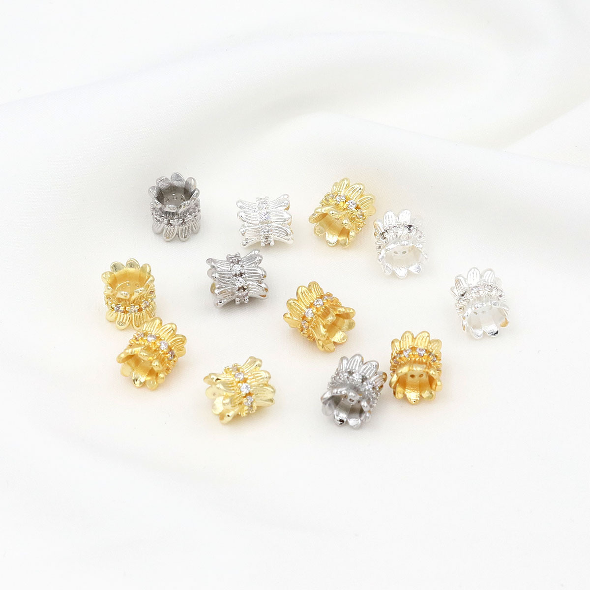 保色14k18k包金ジルコン微嵌め込み花托純銅焼鋳入ダイヤモンド包珠托diyビーズブレスレット部品