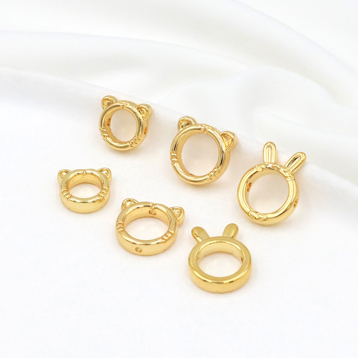 18k本物の金の保色のウサギの双穴のセットの玉の輪は銀の虎の頭のハート型の包みの玉の輪のdiyのアクセサリの数珠の双穴の輪をめっきします。