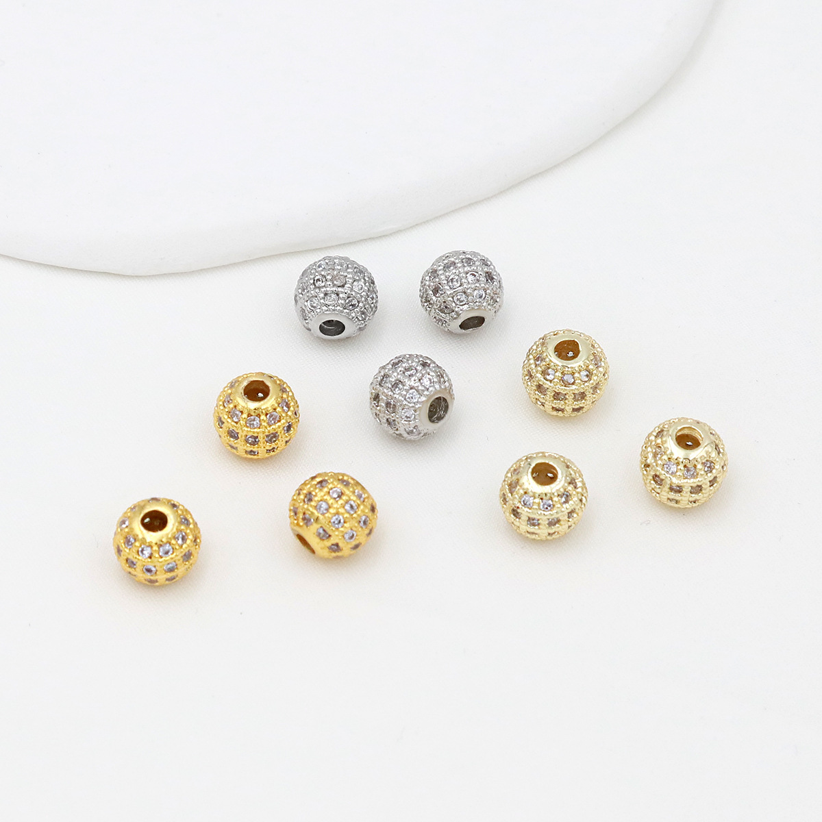18K リアルゴールド色保持マイクロ象嵌ジルコンボールルースビーズブレスレットネックレス手作り diy ビーズジュエリーアクセサリーバッチ C45