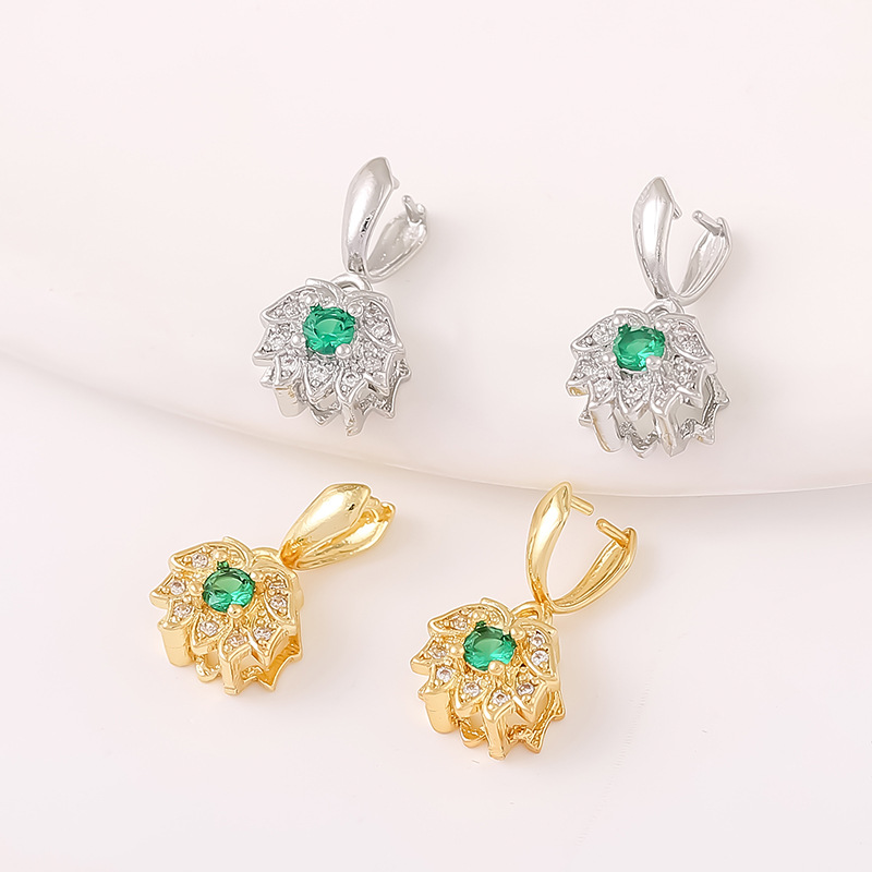 18K リアルゴールドメッキペンダントクリップバックルダイヤモンドロータスバックルヘッドヒスイペンダントクリスタルロータスメロンシードバックルネックレスバックル D42