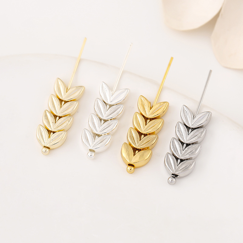 色を保つ18Kリアルゴールドメッキ小麦耳シングルホールスペーサービーズ手作りDIYビーズブレスレットネックレスジュエリーアクセサリー素材D160