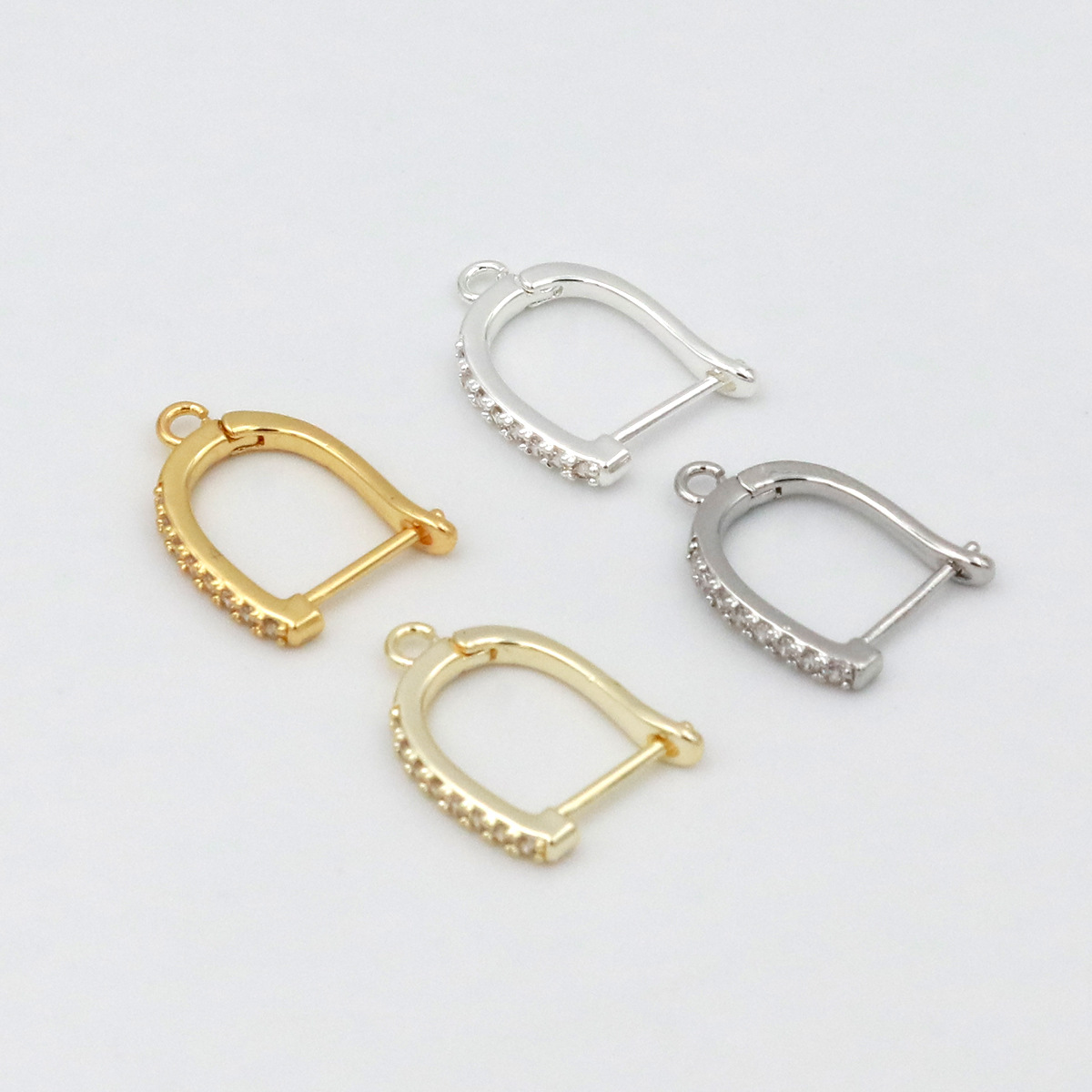 18kメッキの本物の金の保色はジルコンのU型の馬蹄の耳のボタンを入れます。