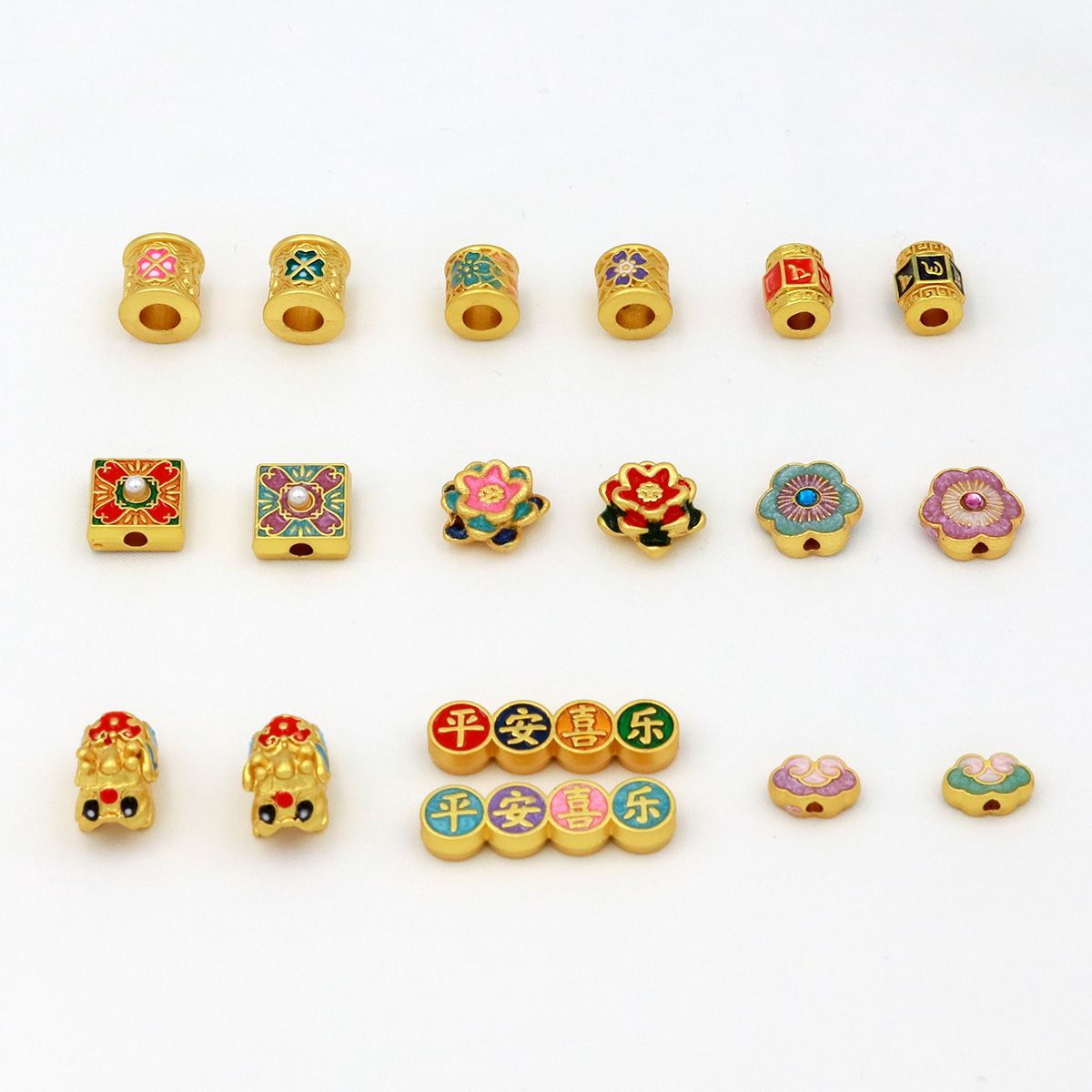 古代ゴールドドリップオイルジュエリーアクセサリー蓮の花平和と喜びビーズ diy 手作りブレスレットジュエリールースビーズ D145