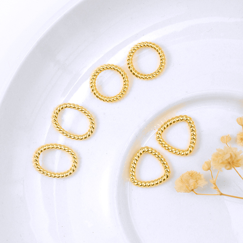 色保持 18 k リアルゴールドツイストソリッドリングラウンドオーバルクローズドリング diy ジュエリーアクセサリー材料 B08