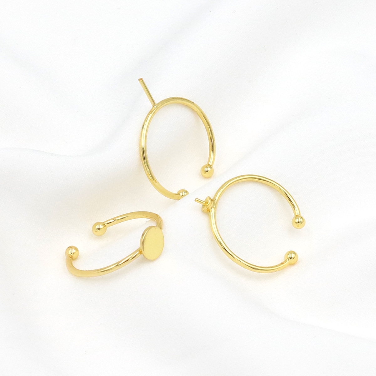 18 18k リアルゴールド色保持粘着パールオープンリングホルダー diy フラットホルダーライブマウスリングリングイヤリングアクセサリー C70