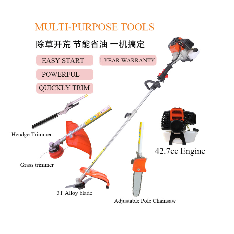 多機能ガソリン高枝鋸ヘッド調整可能なポールチェーンソーフェンスカッター芝刈り機