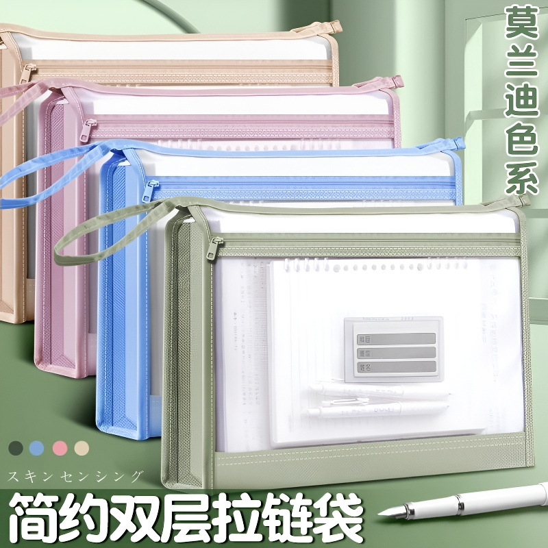 大学生通勤ポータブルA4透明コントラストカラーポータブルジッパーファイルバッグ教科書テスト用紙情報収納袋