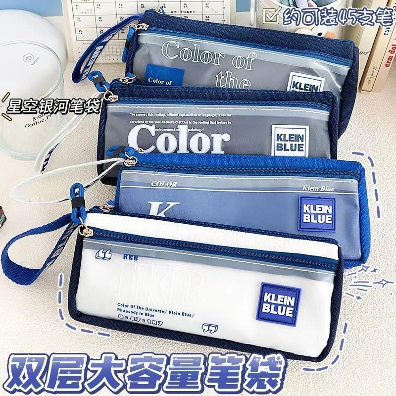 クライン青筆袋透明大容量汚れ防止文房具袋ins高颜値文房具ケース小学生シンプル風