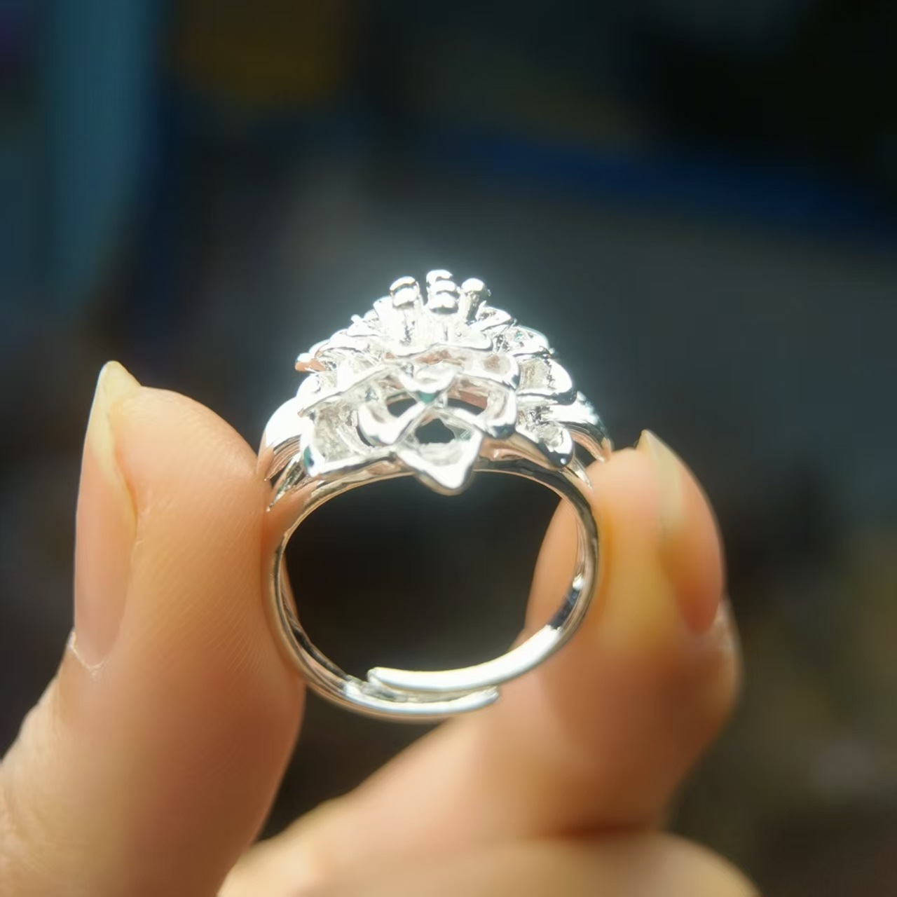 民族風の復古の大きい花の指輪の女性の結婚祝いのいばらの花の大きい花の銀の装飾の活口の指輪は銀の装飾品をまねます。