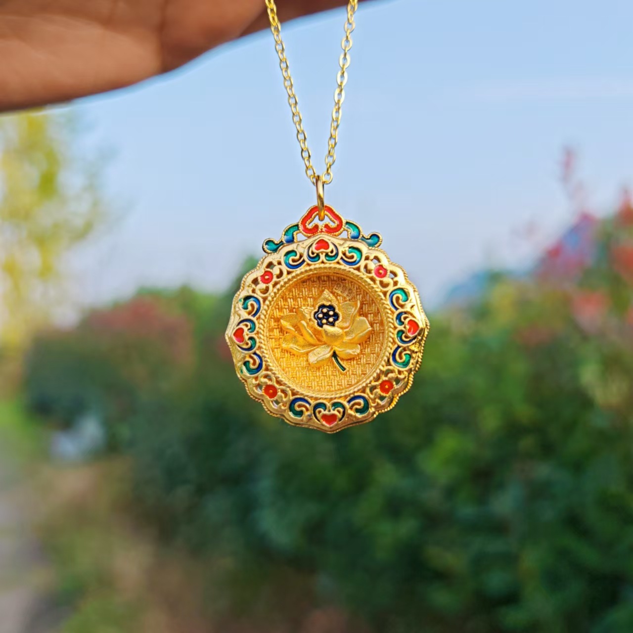 沙金八宝罗盘项链复古国风高级感气质轻奢祥云吊坠珐琅彩新中式