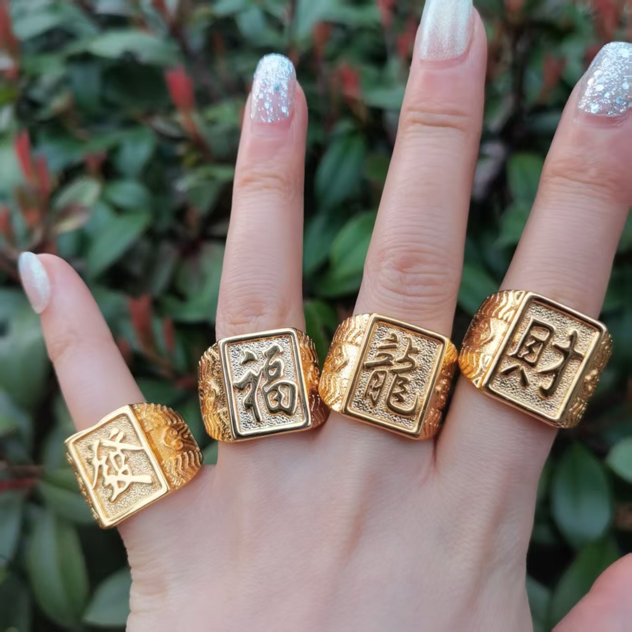 生放送ネットセレブ人気ベトナムサンドゴールドリング金メッキ展示会露店供給メンズフォーチュンドラゴンカラーリング